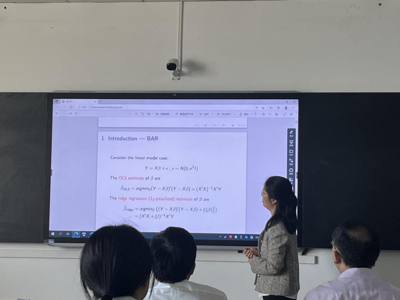 赵慧教授在报告中指出,有多位作者讨论了右删失数据下Cox模型的联合估计和变量选择(Fan andLi, 2002; Huang and Ma, 2010; Tibshirani, 1997)。然而,除了Scolas et al.(2016)和Wu and Cook(2015)中的两个参数程序外,似乎不存在一个既定的程序来处理区间删失数据,这是一种更通用、更复杂的故障时间数据类型。为了解决这个问题,她提出了一个离散自适应岭(BAR)回归程序,该程序结合了二次正则化和自适应加权岭收缩的优势。特别是,该方法允许协变量的数量随样本量发散。在一些弱正则性条件下,建立了该BAR过程的oracle性质和分组效果。赵慧教授进行了广泛的仿真研究,她表明所提出的方法在实际应用中效果良好,能更好地处理共线性问题,优于其他类似oracle的方法。报告结束后,与会师生对报告内容进行了热烈地互动与讨论。赵慧教授的讲座具有深远的前沿和启发性,对与会师生的学习和科研具有重要的意义。