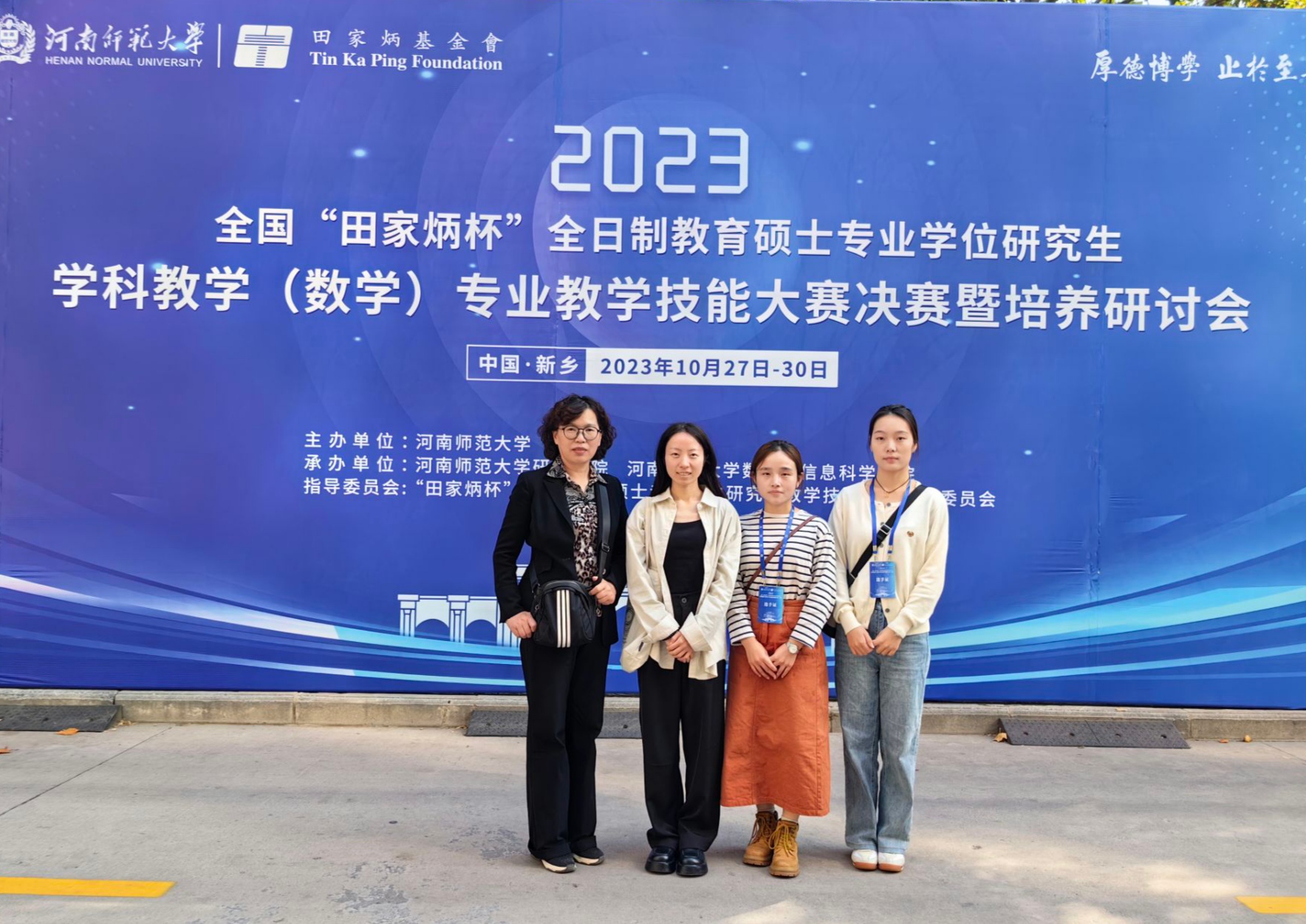 2023年10月29日,由全国教育专业学位研究生指导委员会主办、河南师范大学承办的全国“田家炳杯”全日制教育硕士学科教学(数学)专业教学技能大赛决赛圆满落下帷幕。悟空体育官网2022级学科教学(数学)研究生崔云鸽(指导老师:郑绿洲)、乐玉鹏(指导老师:陈引兰)、方凯月(指导老师:严慧)荣获三等奖。