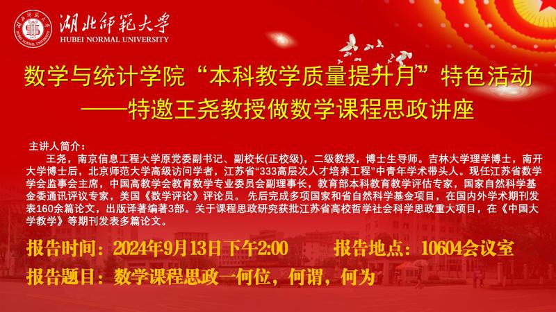 此次报告会的成功举办,为公司数学课程思政的深入发展提供了宝贵的经验和指导,也为公司师生提供了一次难得的学习机会。我们期待在未来的工作中,将王尧教授的先进理念转化为实际行动,为培养德智体美劳全面发展的社会主义建设者和接班人贡献力量。