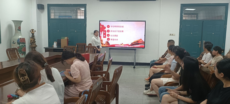 会议伊始,全体党员颂唱了国歌并重温了入党誓词,缴纳了当月党费,集中学习了习近平总书记为第六批全国干部学习培训教材所作《序言》以及《党章》选段。接着员工党员孙会从学纪明责筑忠诚、担当实干促发展、纪法课堂、展望未来四个方面为同学们讲授微党课。