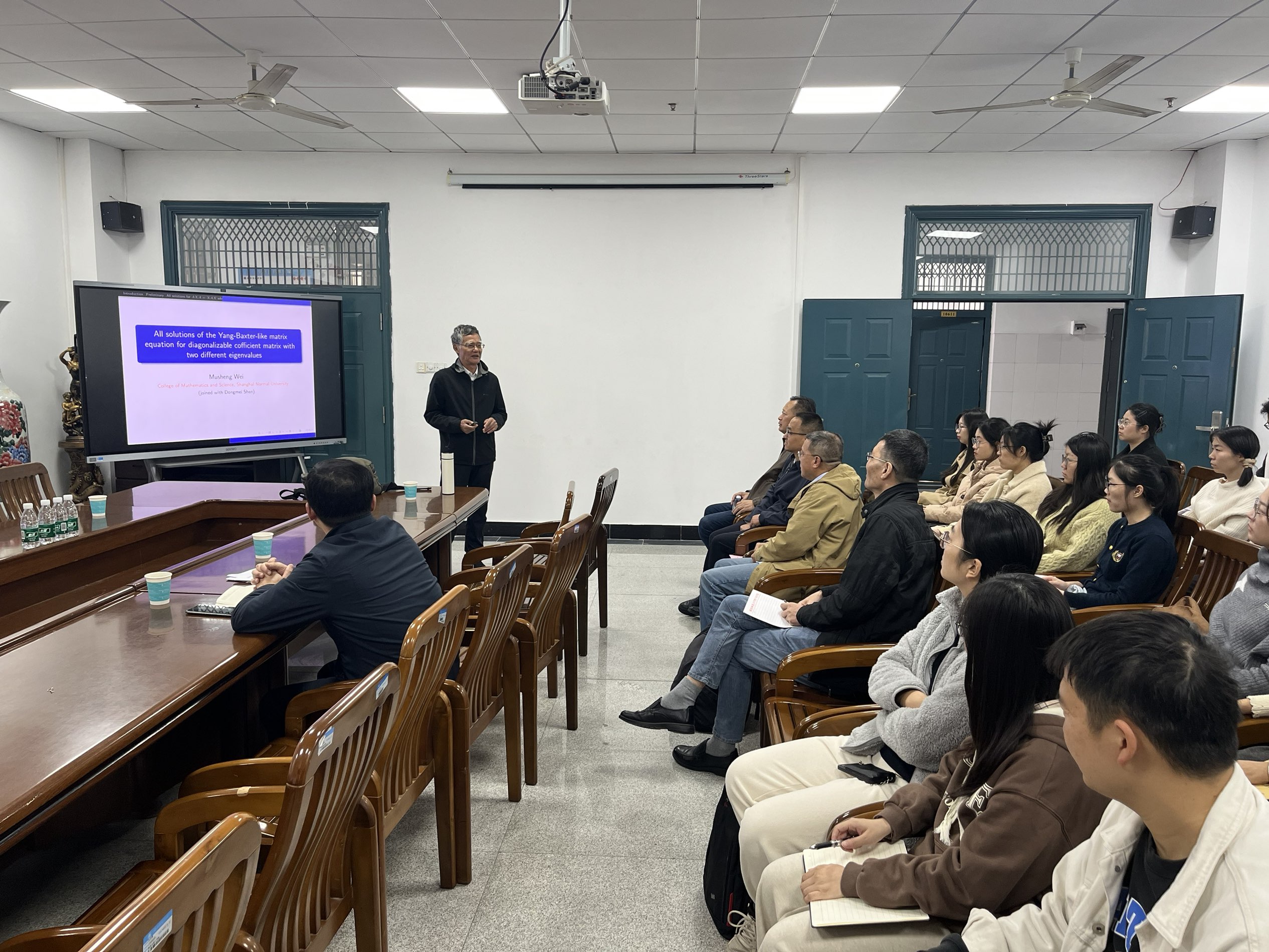 20251025日,应悟空体育官网数学与统计公司邀请,上海师范大学魏木生教授来公司作了题为《具有两个不同特征值的系数矩阵的YangBaxter 方程的所有解》的学术报告。悟空体育的部分青年教师研究生参加了报告会。本次报告会由数学与统计公司经理姜国教授主持。