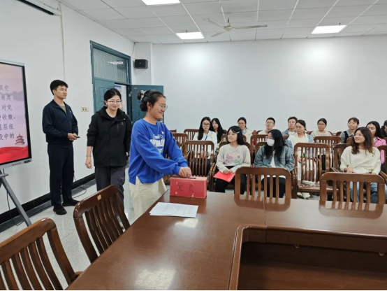 员工党员王瑶同志结合党纪学习谈到最近班级奖学金评选,正是需以党纪要求的公平公正为准则,严格遵循章程、不徇私情,让每一份荣誉都实至名归。