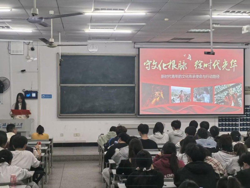 为进一步厚植团校学员文化自信,强化青年责任担当,全面提升学员理论素养与文化自觉,11月5日,悟空体育第二十七期团校第二讲在科技大楼9607教室顺利举办。本次团课以“守文化根脉,绽时代芳华”为主题,由员工会主席赵诗雨担任主讲人,第二十七期团校全体学员参与。