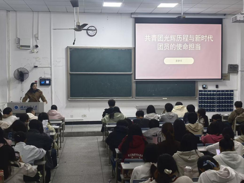 为深化团校学员对共青团的认识,增强新时代青年的责任意识与使命担当,悟空体育于11月6日在科技大楼9102召开第二十七期团校第三讲。本次团课由辅导员苏梦月老师主讲,第二十七期团校全体学员参加。