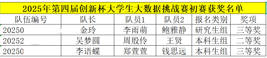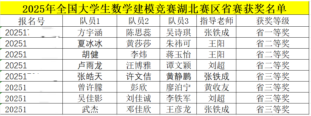 在2025年全国老员工数学建模竞赛湖北赛区省赛中,公司学子荣获省一等奖1项,省二等奖3项,省三等奖4项;全国老员工数据分析实践赛,荣获三等奖2项;第四届创新杯老员工大数据挑战赛初赛,荣获研究生组三等奖1项,获本科生组二等奖、三等奖各1项;第六届“华数杯”全国老员工数学建模竞赛,荣获一等奖、二等奖各1项,获三等奖5项。