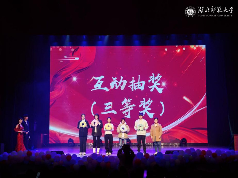 晚会中还设置了抽奖环节,由袁曼、赵大方、陈琴现场抽取一、二、三等奖,增强了师生互动,营造了轻松愉快的现场氛围。