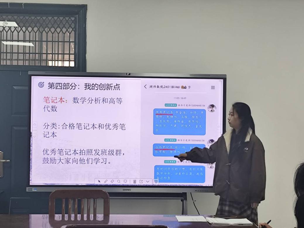 会上,屈媛媛全面复盘本学期班导工作。她指出,本学期14名班导各组织三十余次晚自习活动,在工作推进与学风建设上成效显著,员工满意度较高。同时,她明确后续工作要求:班导开展班级管理需秉持“刚柔并济”原则同时要聚焦不同年级的工作重点以分层分类的精准施策,助力员工成长进步。随后,研一学科数学于淑淼从核心目标与底层逻辑、日常管理重点、个人创新点及未来规划分享工作经验,其分享既有理论层面的深度思考,又有实践层面的鲜活案例,为全体班导提供了可复制、可借鉴的工作范式。