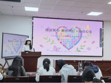 活动伊始,本科生与研究生有序签到入场,在工作人员引导下就座,领取春日拼豆工具包。主持人结合春日景致,介绍活动主题、流程及核心意义,重点提及活动专为缓解研究生学术压力、释放本科生心理负担设计,传递“春日疗愈、心安同行”的理念。